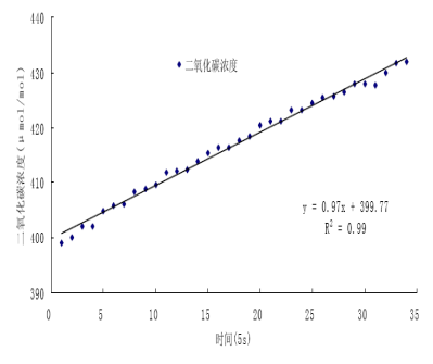 圖a RR-7330 測(cè)量系統(tǒng)測(cè)量閉路箱內(nèi)CO2累積過程及線性關(guān)系(中國(guó)農(nóng)業(yè)大學(xué),韓廣魯,2010)